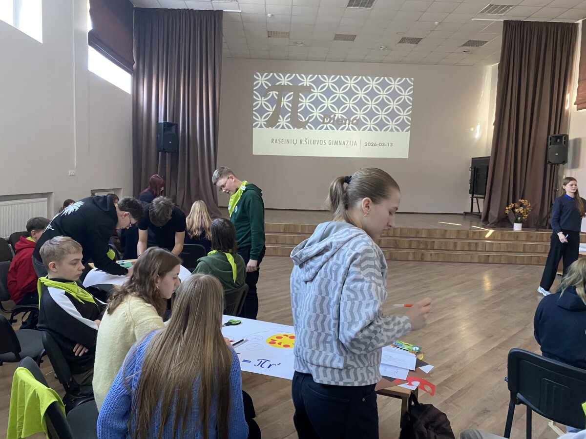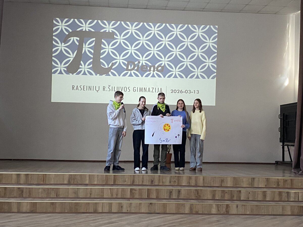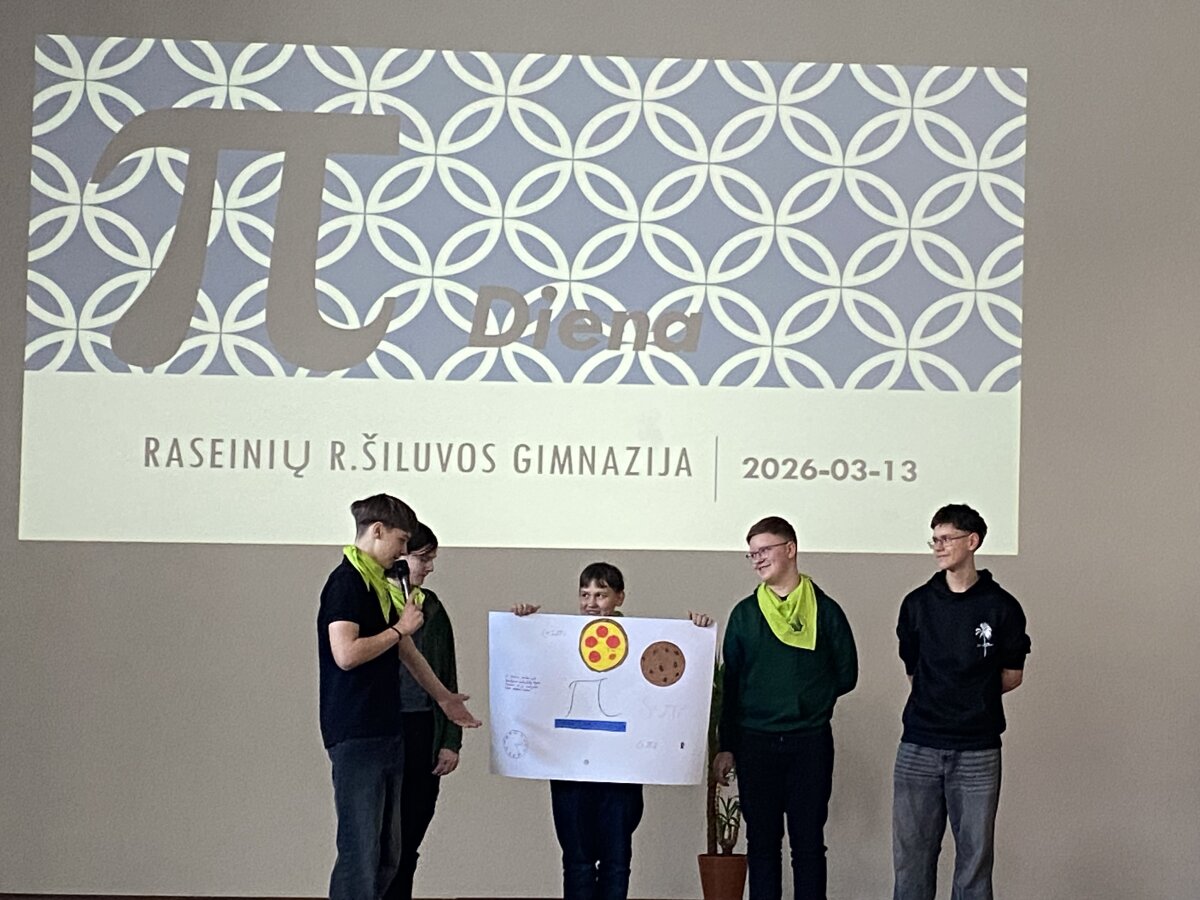Kovo 14 d. visame pasaulyje švenčiama Pi diena, nes skaičius 3,14 atitinka matematinės konstantos  π pirmuosius skaitmenis. Ta proga valgomi pyragai, rengiami matematikos konkursai, vyksta įvairios smagios veiklos. Mūsų rajono matematikos mylėtojai  kovo 13 d. rinkosi Šiluvos gimnazijoje, kur vyko komandinis matematikos konkursas, skirtas šiai dienai paminėti. Raseinių Viktoro Petkaus progimnazijai atstovavo dvi 7–8 klasių mokinių komandos. Mokiniai sprendė įvairias asmenines ir komandines netradicines užduotis, atliko kūrybinę užduotį. Abi komandas lydėjo sėkmė. Mokiniai džiaugėsi iškovotomis prizinėmis vietomis – I-ąja ir III- iąja! Taip pat Kajus D. (8c klasė) laimėjo III-ą vietą individualioje rungtyje.