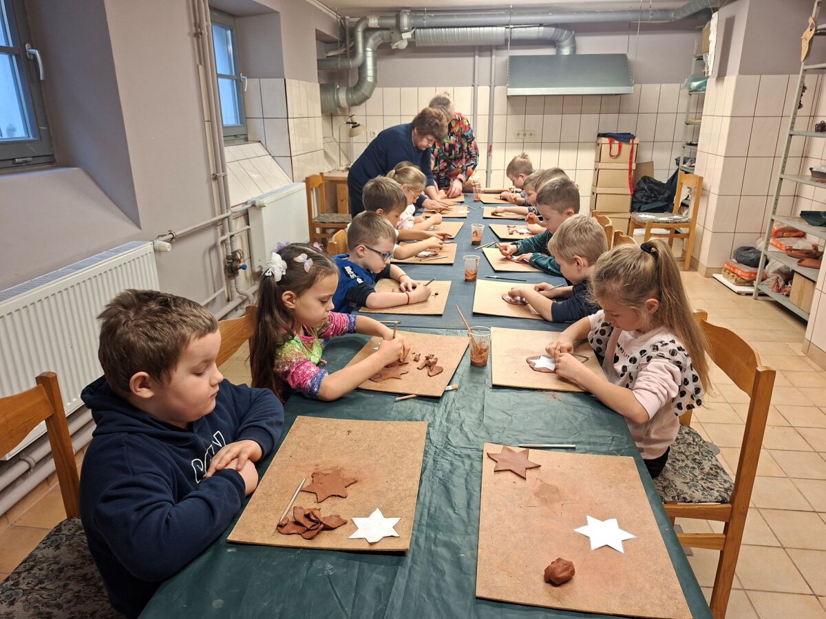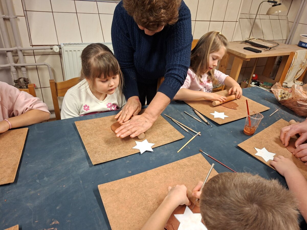 Didžiausias džiaugsmas mažųjų laukė edukacinėje molio lipdymo veikloje. Kiekvienas vaikas gavo gabalėlį molio ir, padedant edukatorei, kūrė mažus meno kūrinius – kalėdines eglutes ir žvakides. Vaikai dirbo labai susikaupę, o jų akys spindėjo kūrybos džiaugsmu. Pasibaigus veiklai, visi džiaugėsi savo darbeliais ir dalinosi įspūdžiais.