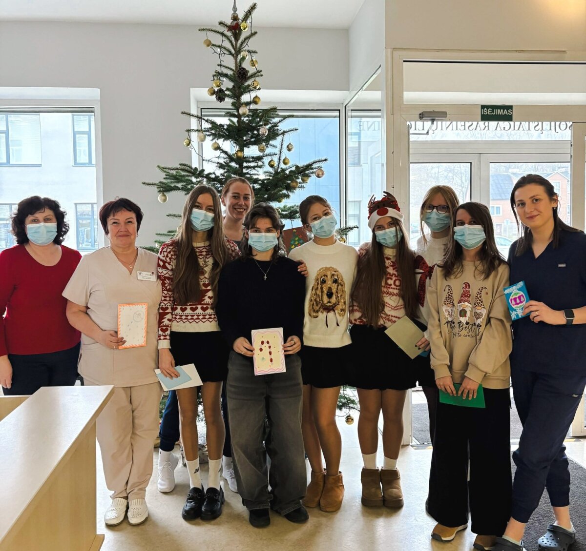 Gruodžio 19 d. mūsų progimnazijos mokinių grupė kartu su visuomenės sveikatos specialiste Laima Galinaitiene lankėsi VšĮ Raseinių ligoninėje ir Lietuvos Raudonojo Kryžiaus Raseinių skyriuje. Mokinės dovanojo pacientams ir darbuotojams ne tik vaikų pieštus sveikinimo atvirukus, bet ir šypsenas, šilumą bei nuoširdumą. Įstaigos dėkoja Raseinių Viktoro Petkaus progimnazijos mokiniams ir mokytojams už bendrumo akciją „Kalėdinis sveikinimas vienišam žmogui“. Ačiū už Jūsų gerumą ir bendrystę. Tegul artėjančios šventės būna kupinos Taikos, Tikėjimo ir Vilties!