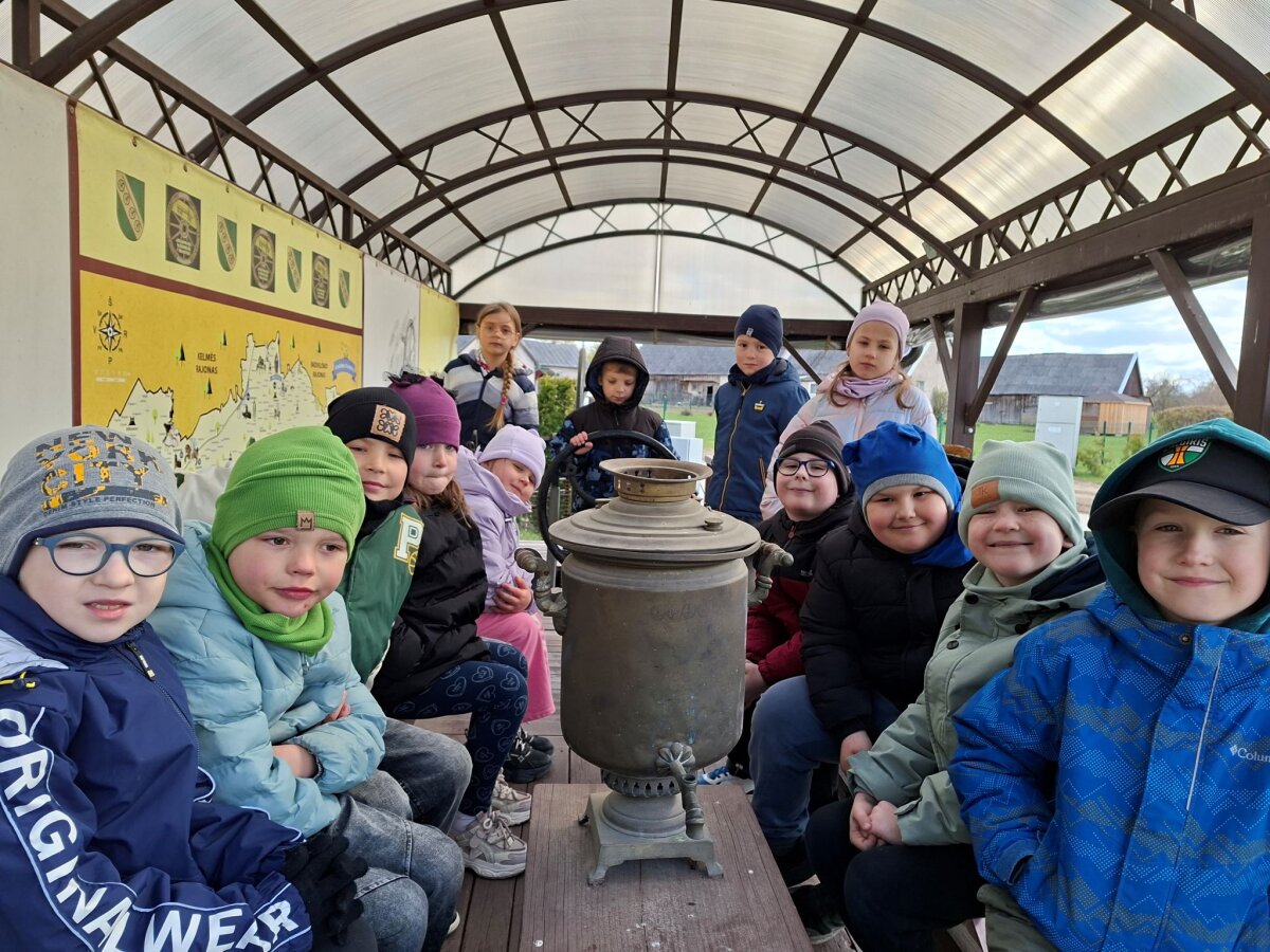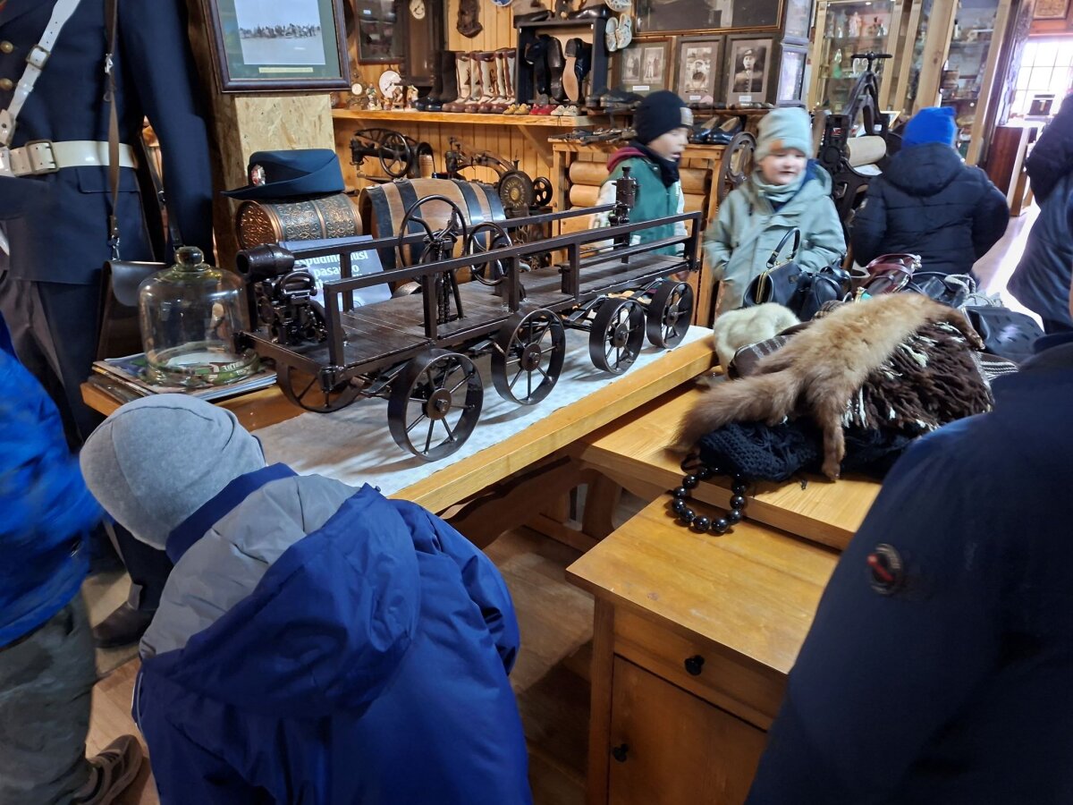 Atvykę į muziejų, vaikai su dideliu susidomėjimu apžiūrėjo neįprastą transporto priemonę – aštuonratį. Aiškinosi, kuo ši mašina ypatinga, kaip ji veikia. Didžiausias džiaugsmas vaikams buvo galimybė ne tik pamatyti, bet ir iš arčiau susipažinti su eksponatais. Ypač juos sudomino kalvio įrankiai – vaikai smalsiai apžiūrinėjo įvairius senovinius plaktukus, žnyples, dumples ir kitus darbo įrankius, be to, klausėsi pasakojimų apie kalvio amatą ir svarbą senovėje. Ne mažiau nustebino ir kiti muziejaus eksponatai – senoviniai mokykliniai suolai ir uniformos, radijai, siuvimo mašinos, lygintuvai bei vaikiški žaislai. Taip pat vaikai sužinojo, kaip anksčiau žmonės keliavo, kokius iššūkius teko įveikti ir kaip laikui bėgant keitėsi transportas.