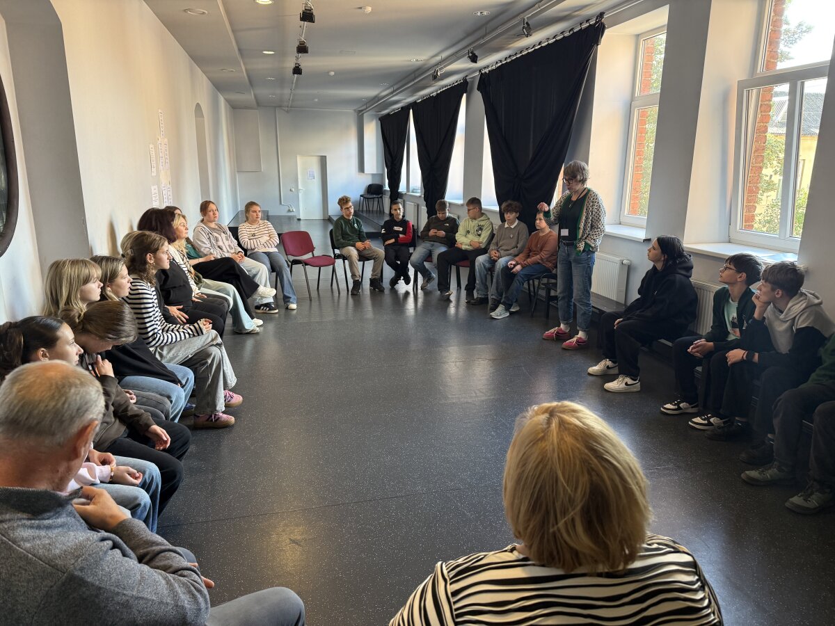 Šį rugsėjį jau turėjome dvi išvykas į Nacionalinį Kauno dramos teatrą. Rugsėjo 8 dieną mokiniai ir mokytojai dalyvavo edukacijoje, kuri buvo festivalio „Nerk į (mokslo) teatrą“ dalis. Edukacijoje fizikos mokytoja kartu su Nacionalinio Kauno dramos teatro garso ir šviesų dailininku bei garso režisieriumi pristatė, kokie fizikos dėsniai susiję su teatro garso ir šviesų efektais.