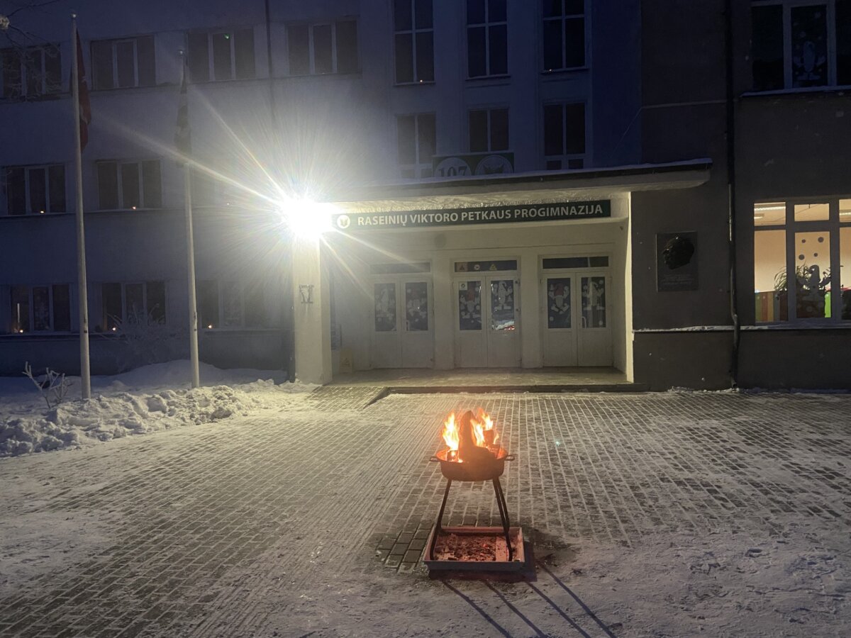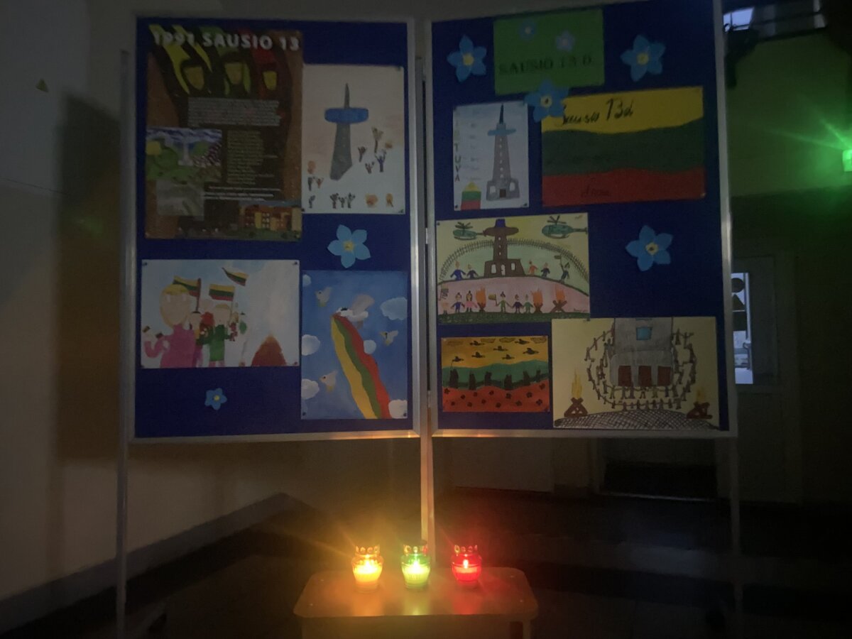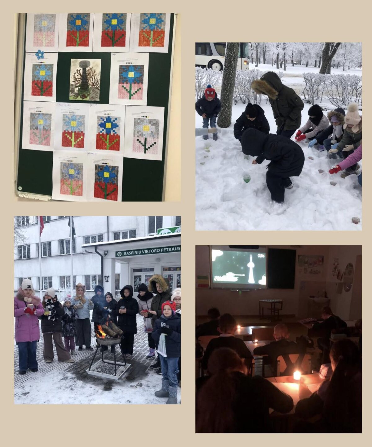 Sausio 13-osios rytas – šaltas, speiguotas, bet ramus. Progimnazijos kieme dega laužas. Tai simbolis Laisvei, Tikėjimui, Pergalei. Progimnazijos bendruomenė pasipuošusi Neužmirštuolėmis. Gėlės žiedo simbolis pasirinktas norint pagerbti kovotojus už Laisvę, o pačios Neužmirštuolės pavadinime užkoduota mintis, jog kovotojai yra nepamiršti ir šiandien. Bibliotekos stenduose, progimnazijos TV ir kiekvienoje klasėje pateikta informacija, prisiminimai apie įvykius, pakeitusius Lietuvos istoriją. Pirmame aukšte – mokinių piešiniai, primenantys, kad ir po 35-erių metų Sausio 13-osios didvyriai lieka mūsų atmintyje. Kol languose mirgėjo žvakutės už žuvusiuosius, mokiniams buvo vedamos pilietinės pamokos „Pergalės šviesa“. 6b ir 8a klasių mokiniai su mokytojomis dalyvavo Valstybinės vėliavos pakėlimo ceremonijoje Raseinių miesto Žemaičio aikštėje. Sausio 12 d. Jaunieji šauliai ir mokinių taryba vyko į Jurbarko r. Eržvilko gimnaziją dalyvauti edukacijoje „Apkasų žvakių gamyba“. Daug ko išmoko bendraamžiai mokydamiesi vieni iš kitų. Tvirta bendrystė tegul saugo mus, o mūsų norai, troškimai – aiškūs ir prasmingi: norime gyventi ir džiaugtis Laisvėje!