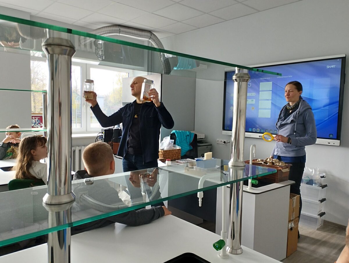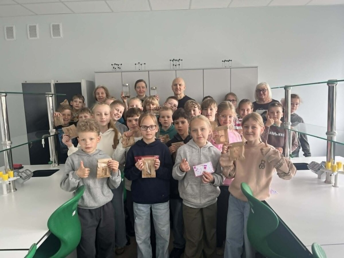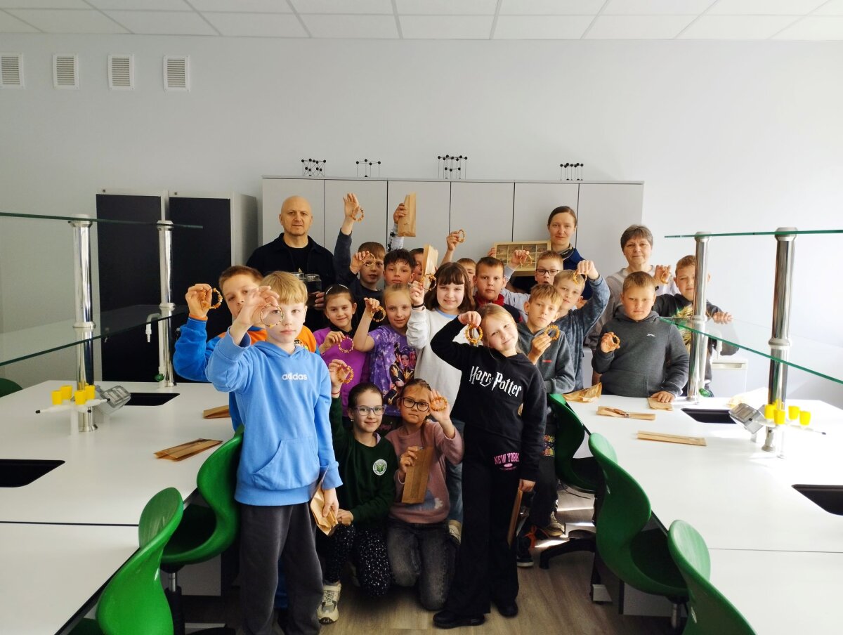 Charizmatiškasis edukatorius Robertas, pasitelkęs garsiąją legendą „Jūratė ir Kastytis“, įtaigiai papasakojo vaikams apie Baltijos gintaro atsiradimo istoriją. Mokiniai sužinojo, kaip susiformuoja gintaro gabalėliai, kaip juos atskirti nuo iš kitų medžiagų pagamintų karoliukų, tyrinėjo gintaro savybes, stebėjo jo reakciją į sūrų ir gėlą vandenį, susipažino su degumo ypatybėmis. Vaikai šildė gintaro dulkes delnuose, uodė jų skleidžiamą kvapą, o naudodamiesi didinamuoju stiklu apžiūrėjo gintaro inkliuzus.