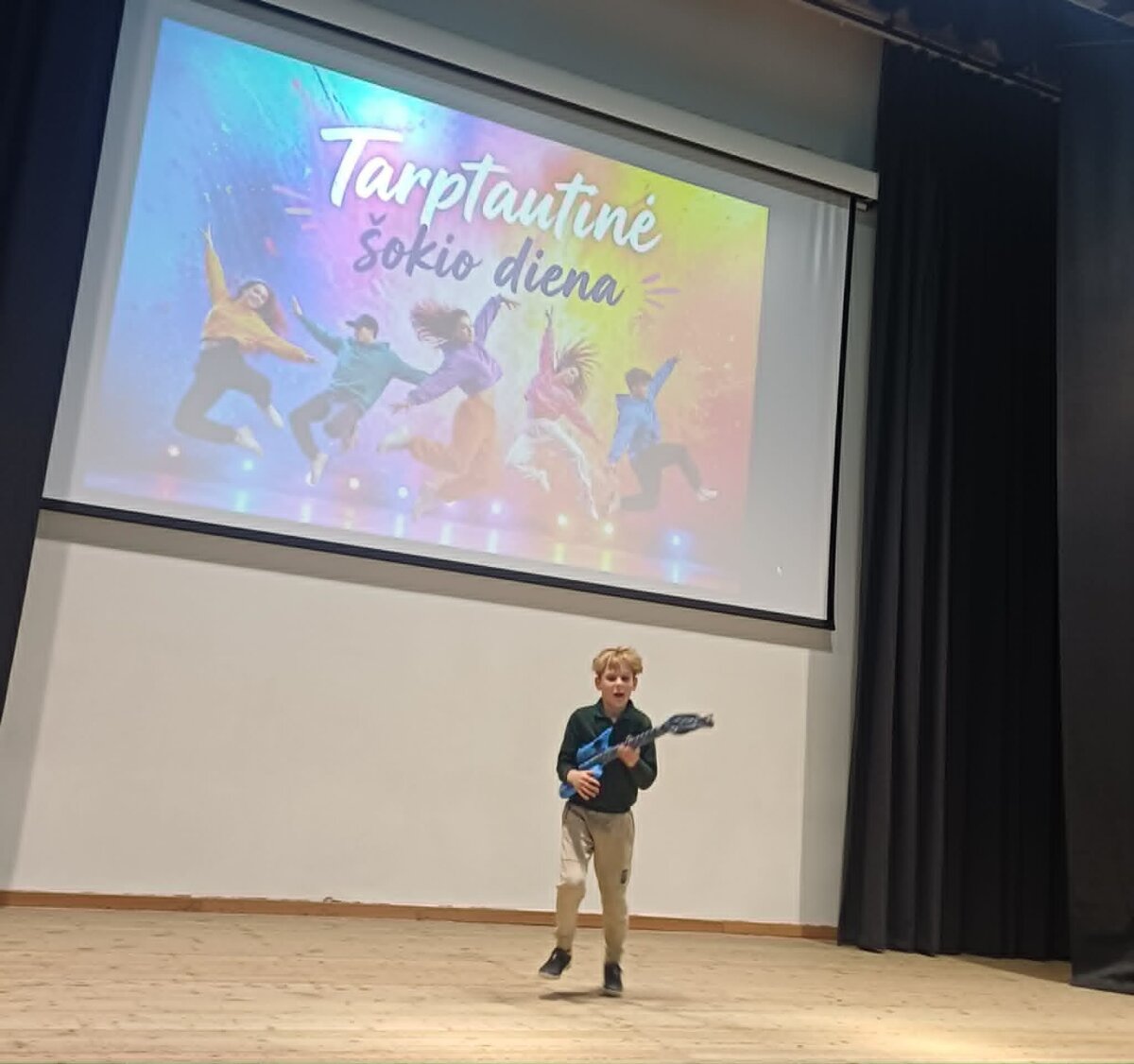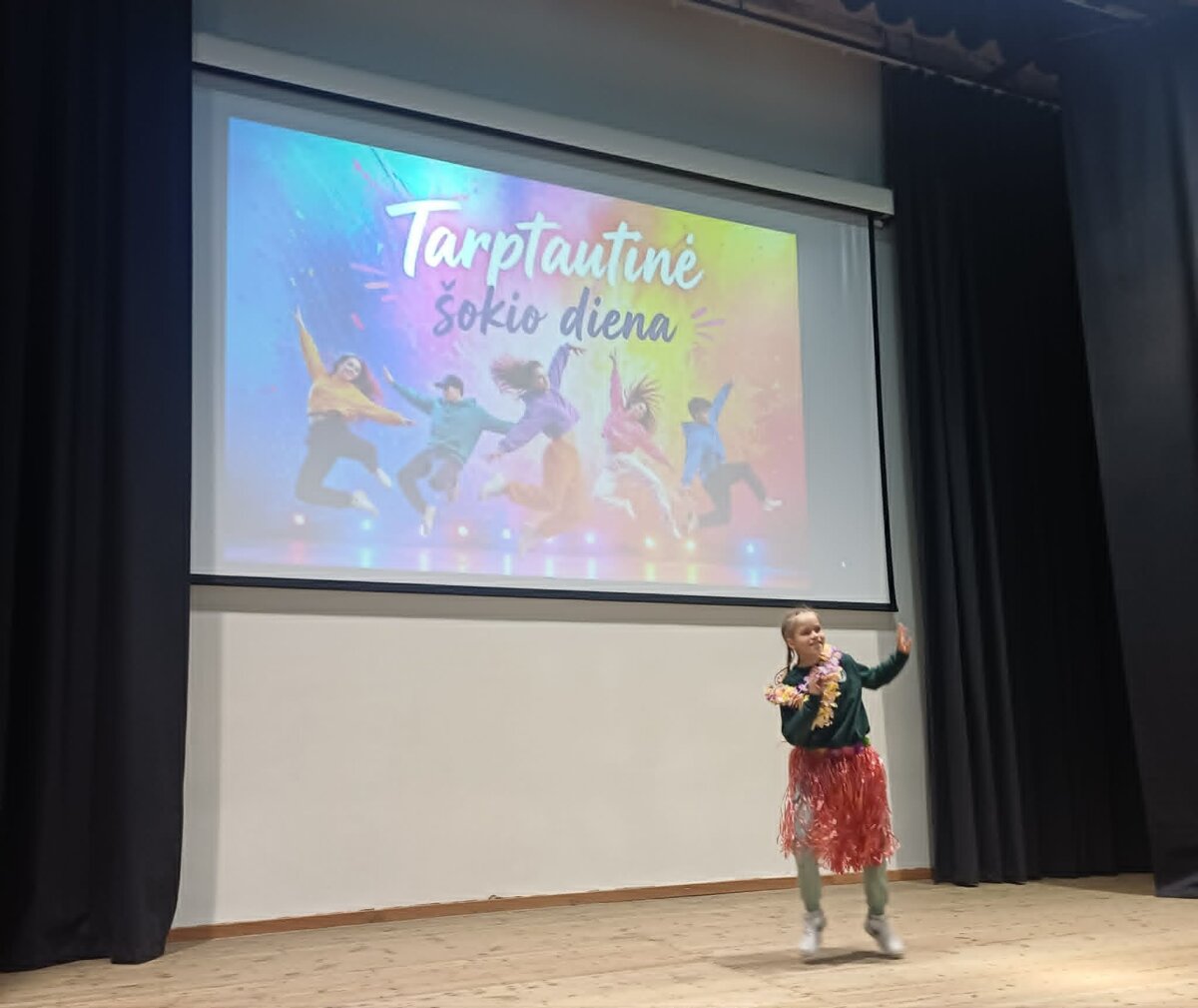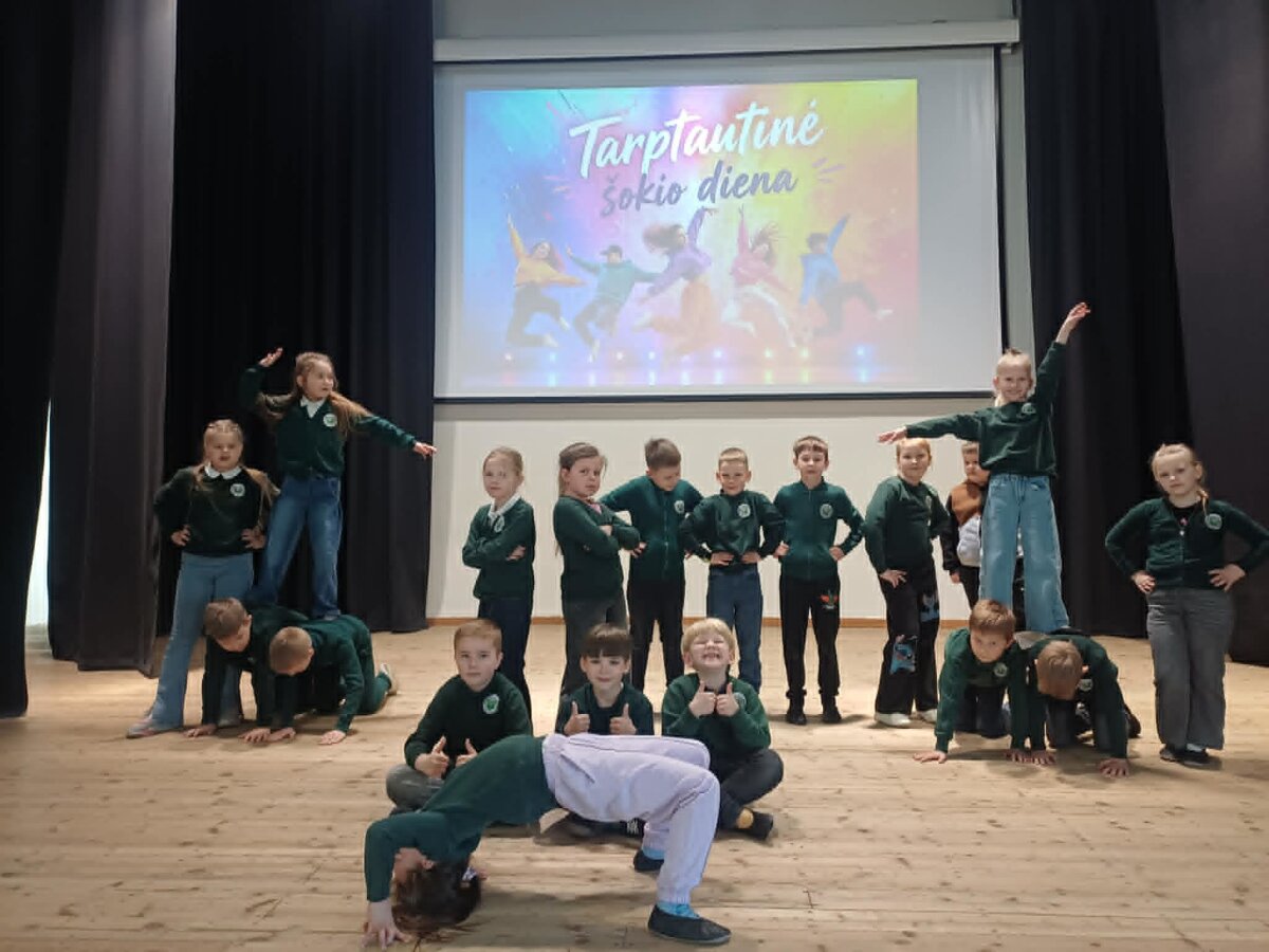 Balandžio 28 dieną progimnazijos aktų salėje vyko nuotaikingas renginys, skirtas Tarptautinei šokio dienai paminėti. Jame dalyvavo 1–4 klasių mokiniai, kurie turėjo puikią galimybę ne tik pajudėti, bet ir daugiau sužinoti apie šokio pasaulį.