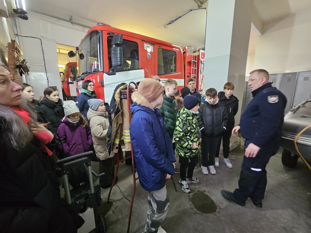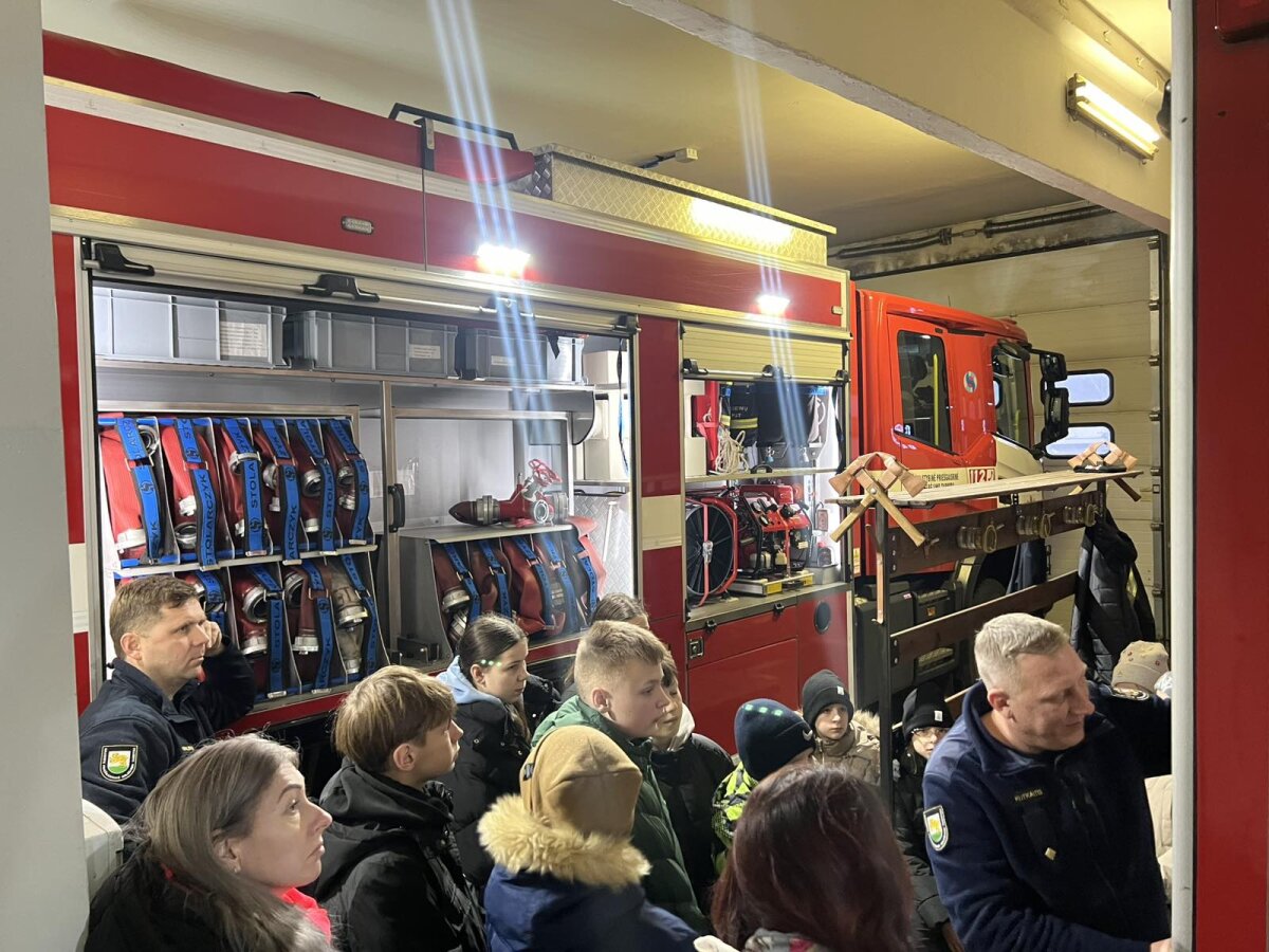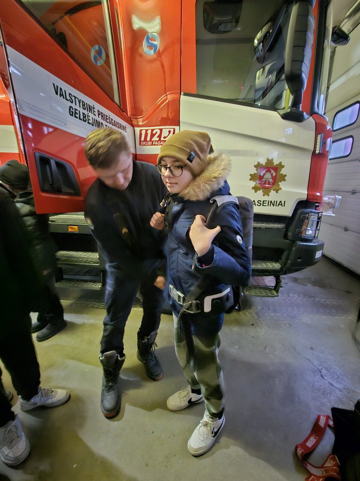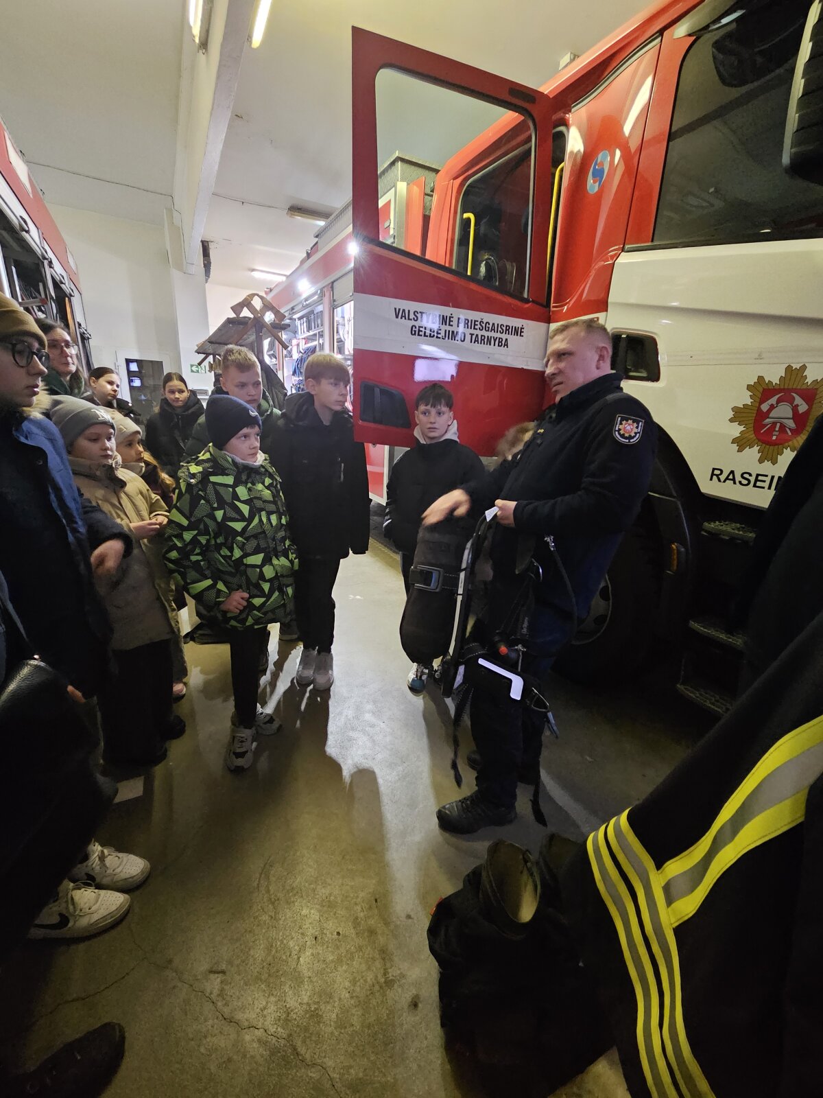 Gruodžio 6 d. smalsūs 2-8 klasių mokiniai lankėsi Raseinių priešgaisrinėje tarnyboje. Atvykę į stotį mokiniai buvo pasitikti budinčių ugniagesių komandos. Ugniagesiai papasakojo apie savo kasdienį darbą, nuolatines budėjimo valandas ir reagavimą į įvairiausius iškvietimus: nuo gaisrų iki pagalbos teikimo eismo įvykiuose ar kitose ekstremaliose situacijose, pvz., žmogui įlūžus lede. Vaikai turėjo galimybę iš arti apžiūrėti gaisrinius automobilius, gesinimo įrangą, kvėpavimo aparatus, hidraulinius gelbėjimo įrankius, jie lankėsi budėtojų kambariuose, įrangos sandėliuose, apžiūrėjo gaisrinės bokštą. Mokiniai išgirdo apie ugniagesių darbo ypatumus, rizikas ir komandų bendradarbiavimą, informaciją apie pagrindines gaisrų priežastis, kaip jų galima išvengti, patarimus apie saugų elgesį namuose ir viešose vietose, ką daryti kilus gaisrui, kaip teisingai iškviesti pagalbą, kaip elgtis ant užšalusių vandens telkinių ir kokias saugumo priemones būtina turėti, pasakojimus apie tikras gelbėjimo operacijas ir situacijas, su kuriomis ugniagesiams tenka susidurti kasdien.